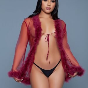 The Short Chiffon Robe with Faux Fur Trim is a chic and elegant addition to any loungewear collection, blending the lightness of chiffon with the luxurious touch of faux fur.